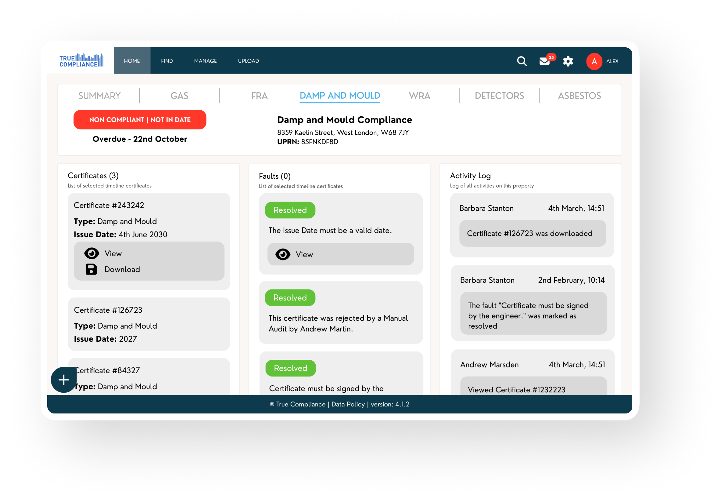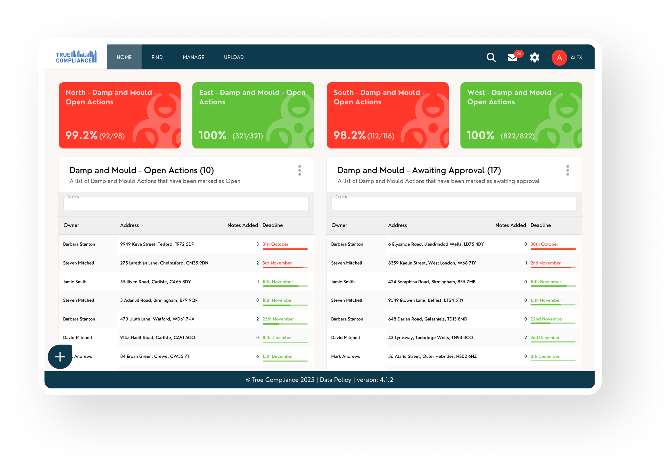 With True Compliance, you can track damp and mould cases from first report to final resolution with full audit history and zero blind spots.